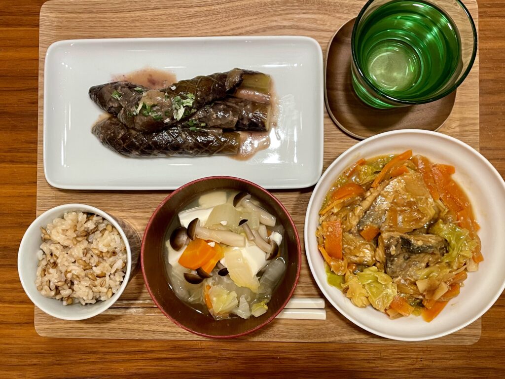 息子には別に牛丼を作り、私は残っていた鯖のちゃんちゃん焼きを片付けます。鮭で作るよりも鯖バージョンの方が好みかも。