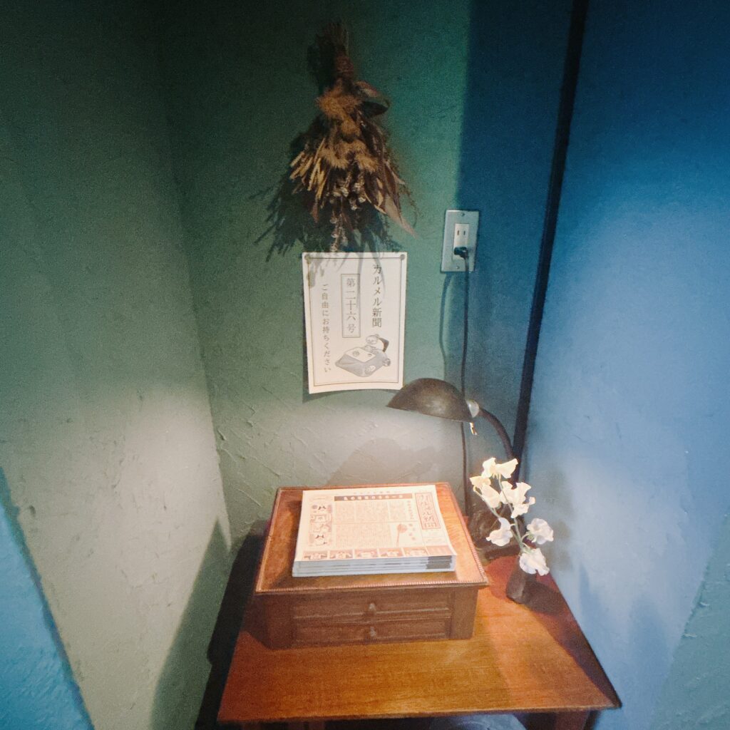 店内入り口に置いてあるのは店員さんが作ったカルメル堂の新聞。これを読むだけで、店員さん達がこのカフェを愛して色々な工夫がされているんだなぁとほっこり♡