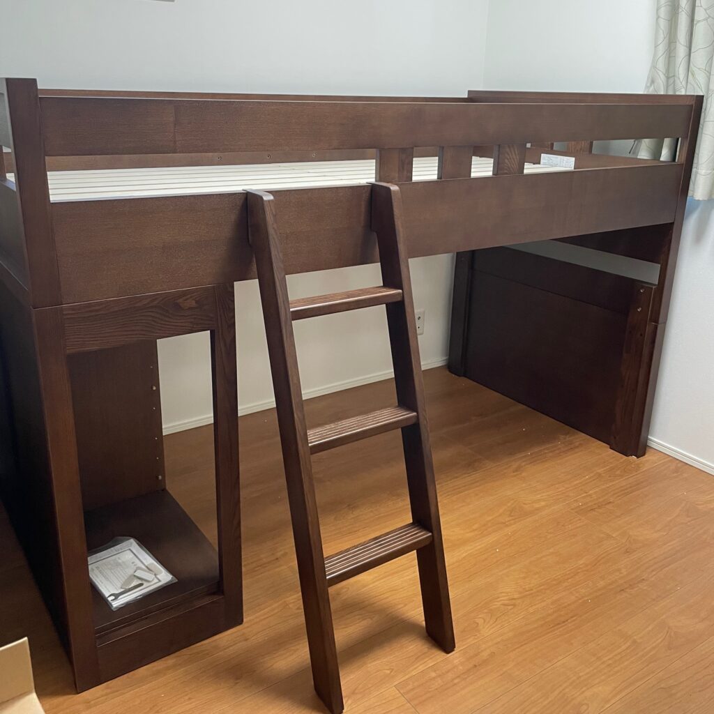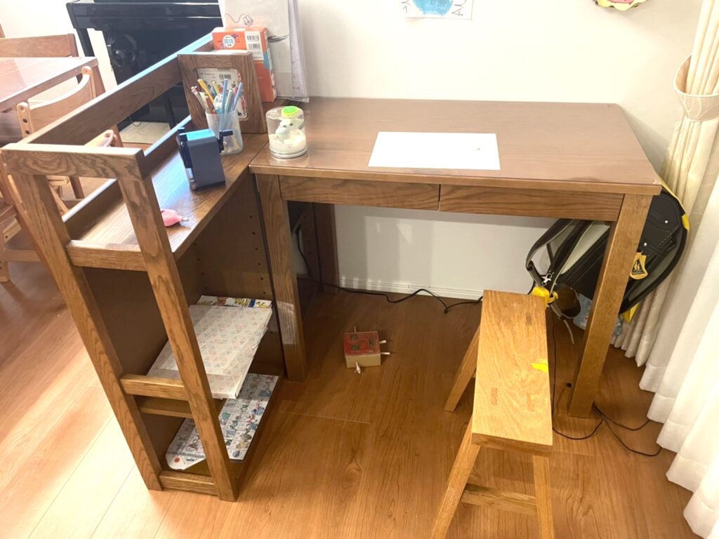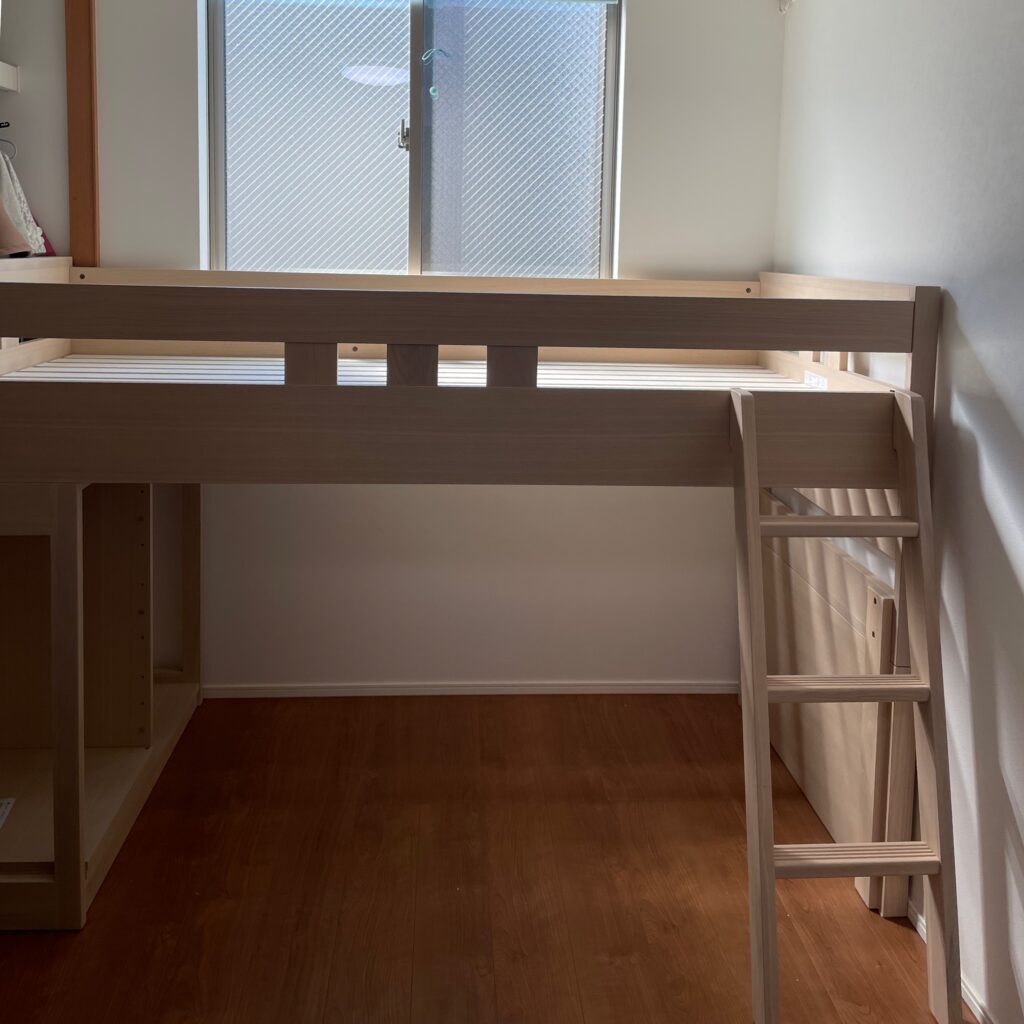 収納も増えるし、ベッドの下をスペースとして活用できるし、机も揃えたら部屋の統一感も出しやすいかな、と基本は娘の意向に沿う形で探していました。娘としてはベッド下で秘密基地を作りたいご様子。