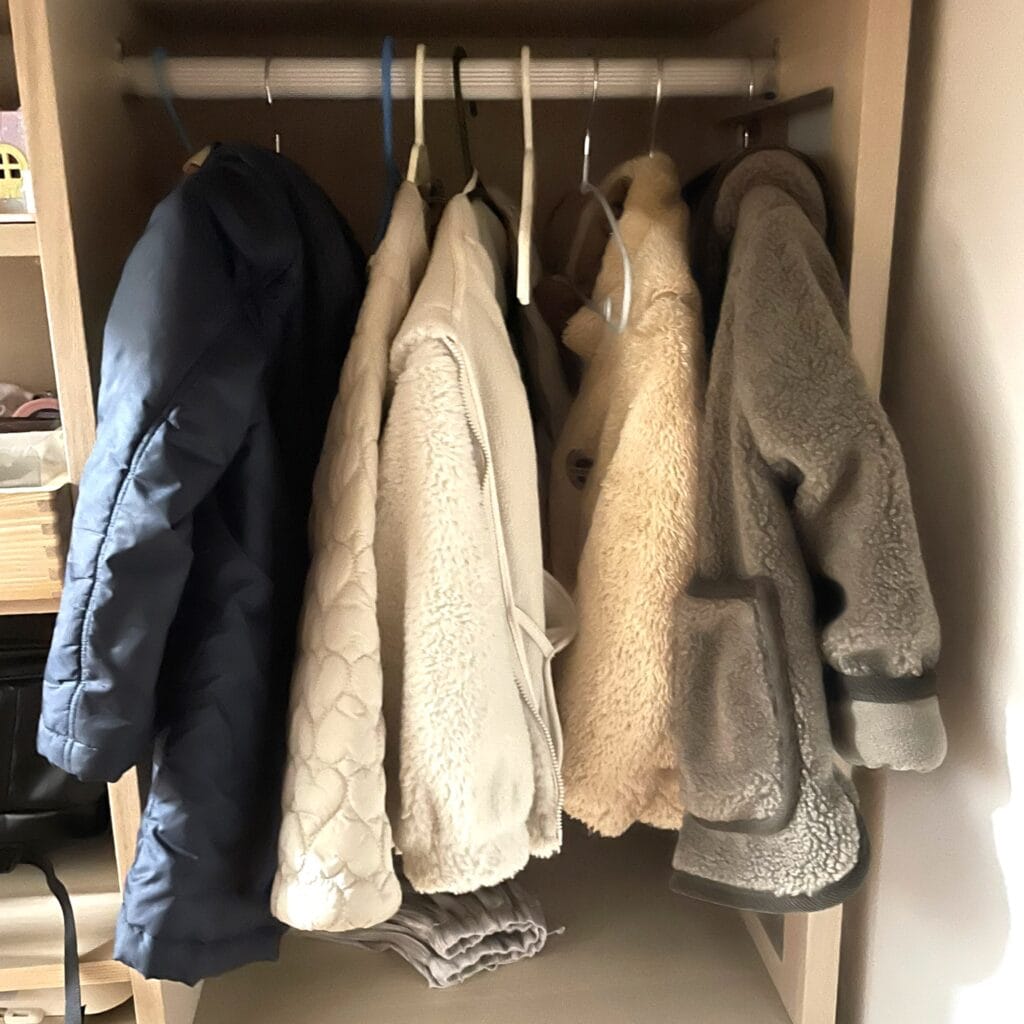 子供達は2人ともクローゼットに洋服をかけられるほどの背丈がないので、ジャンパーなどの出し入れがスムーズにできなかったところ、こちらのハンガーラックにより自分で出し入れがしやすくなりました。