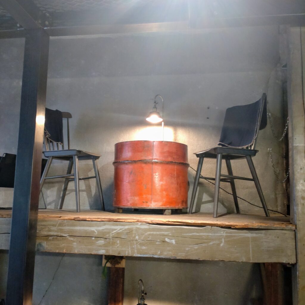 1階にある雰囲気のある席。頭打ち付けてしまいそうだけど…。ちなみにこの写真の下にsuiちゃんたちがサッとしゃがんでくれています。何も言わずとも撮りたいものを察知。読みが素晴らしい同期たち。