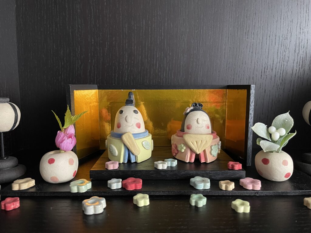 我が家の末っ娘(小2)の初節句の時に購入した、糸島を拠点に活動されている陶芸家の岡崎順子さん作陶の、陶のおひなさま。(初節句の時の過去記事は以下の通りです↓)