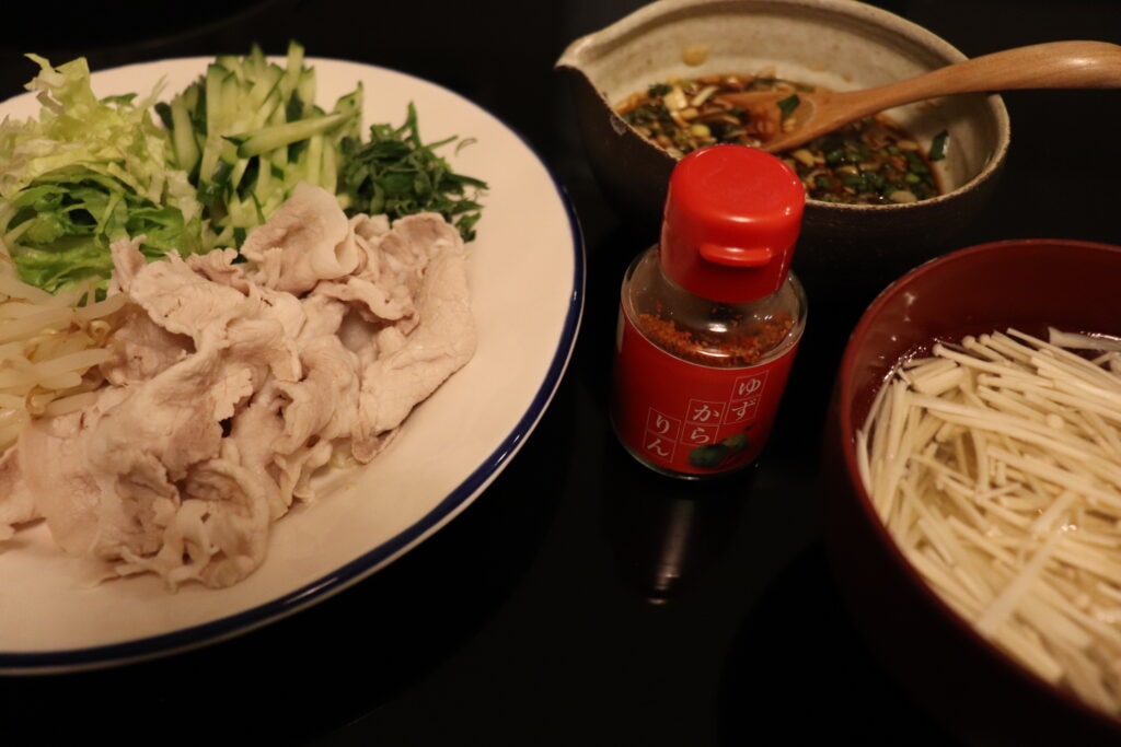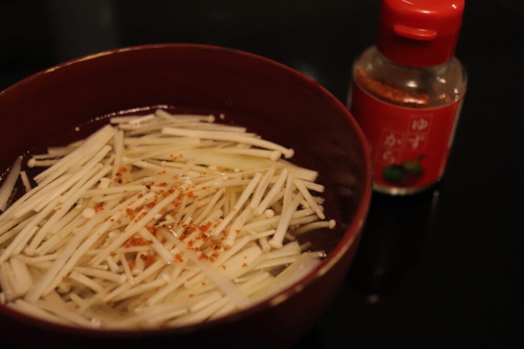 エノキと豚バラのエキスが出たシンプルなスープにかけたり