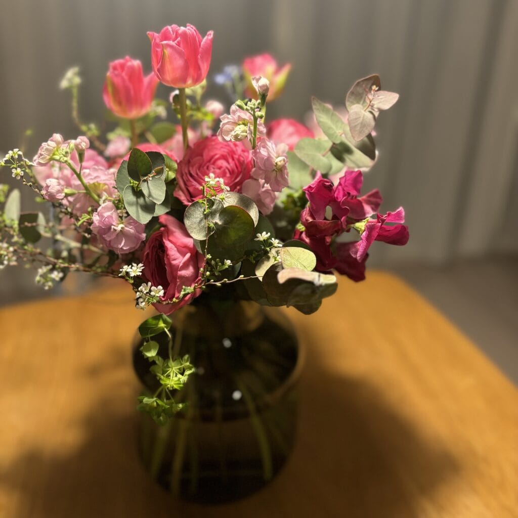 お花がある暮らしは、始めてみるとやはり華やかで癒されます
