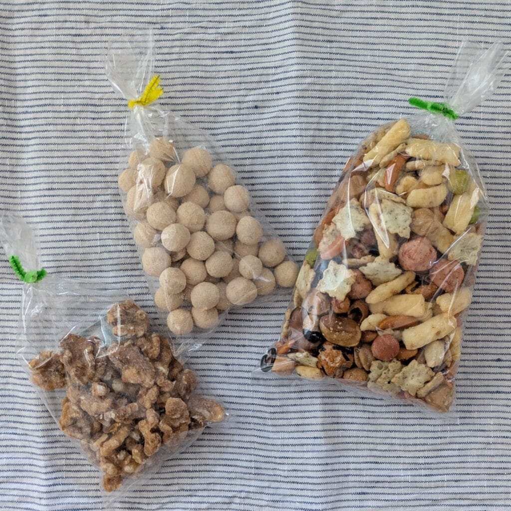 量り売りのおかきミックスを200gと、容器に入った豆ミックス(プチ)をお土産に購入しました。(トップ画の商品です)