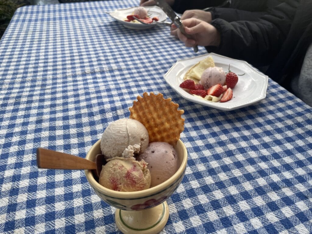 この日は長男(中2)と末っ娘(小2)と3人で訪問し、長男&末っ娘はクレープシュゼット、私は小さなアイスクリーム3種類頂ける“Little 3(リトルスリー)”を。