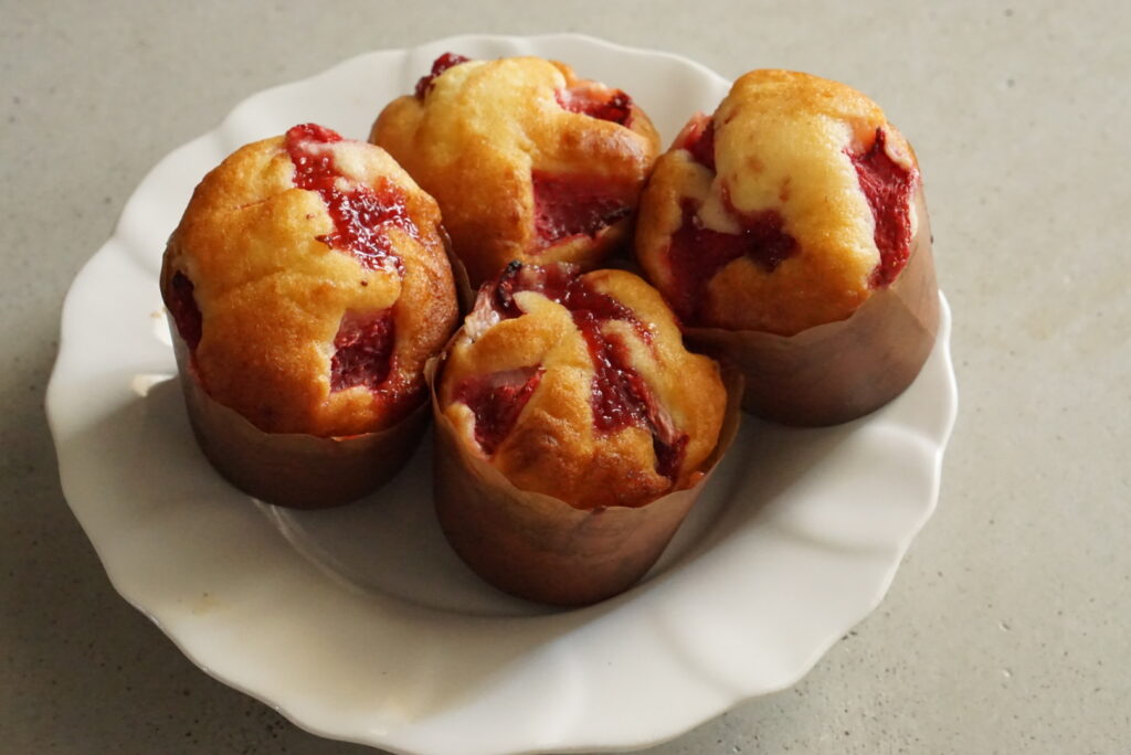 もう終わっていまったけれど、イチゴの時期は作ったいちごジャムを入れて生のイチゴものせて焼いたり、チョコチップを混ぜたり子ども達が喜んで食べてくれます。だから私はほとんど食べれない…。