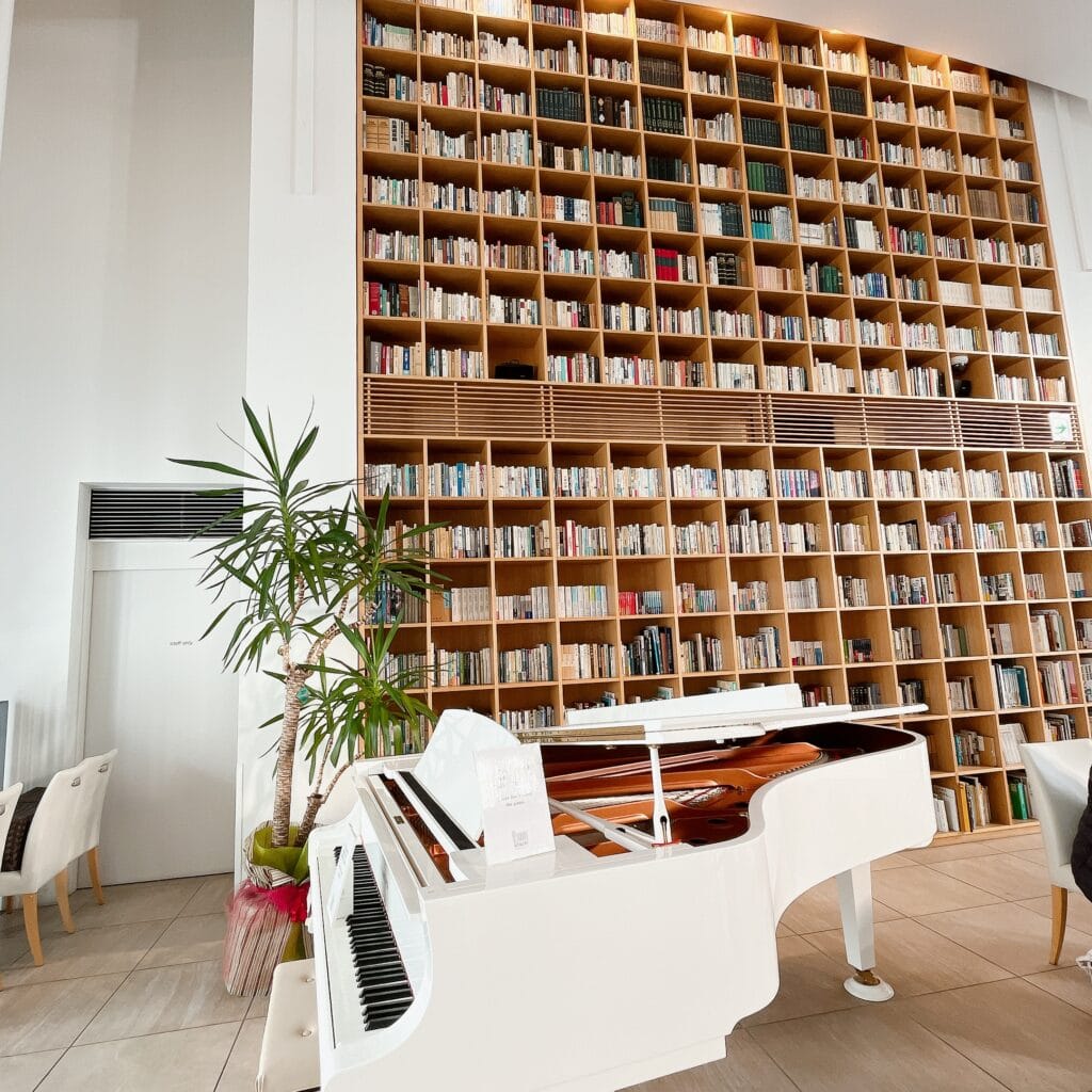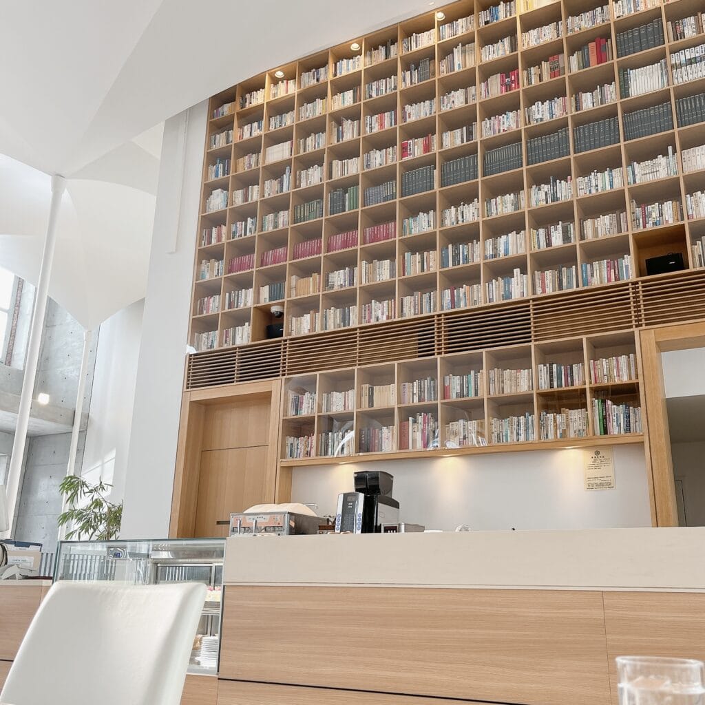 店内は高い天井までびっしり本棚が造り付けられていて、レトロデザインと相まってカフェの雰囲気を更に良くしている。