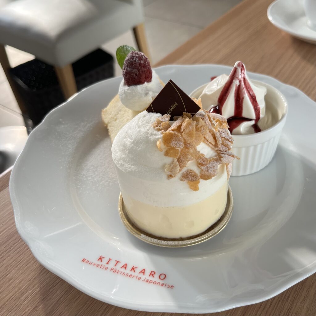 ケーキは選べたので「スノーマウンテン」というkiriクリームチーズコンクール銀賞受賞ケーキを。付いてきたソフトクリームも北海道らしい濃厚なおいしさ。