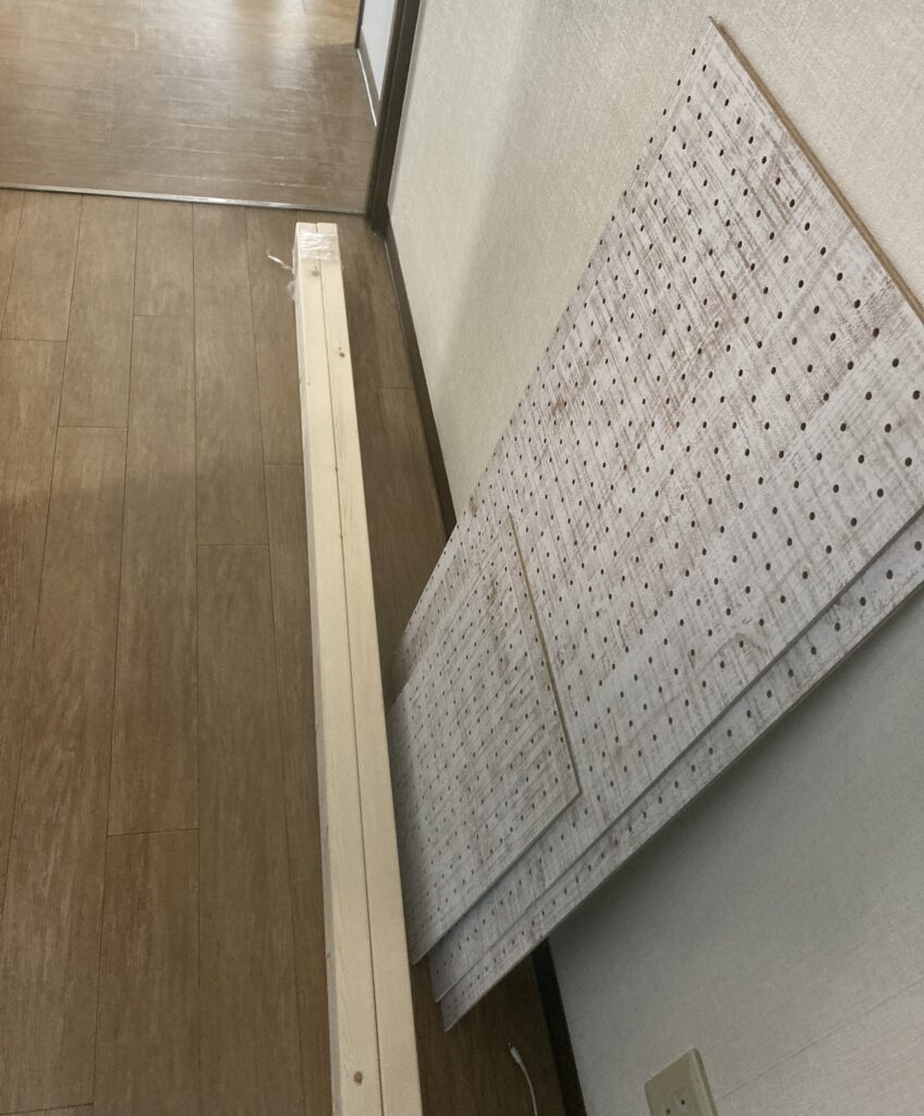 2.2×4材と有孔ボードをネジで留める。