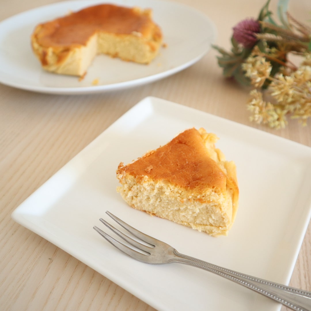 1日冷蔵庫で寝かせました!生地も落ち着いて、いい具合にチーズケーキ感が出てます♡