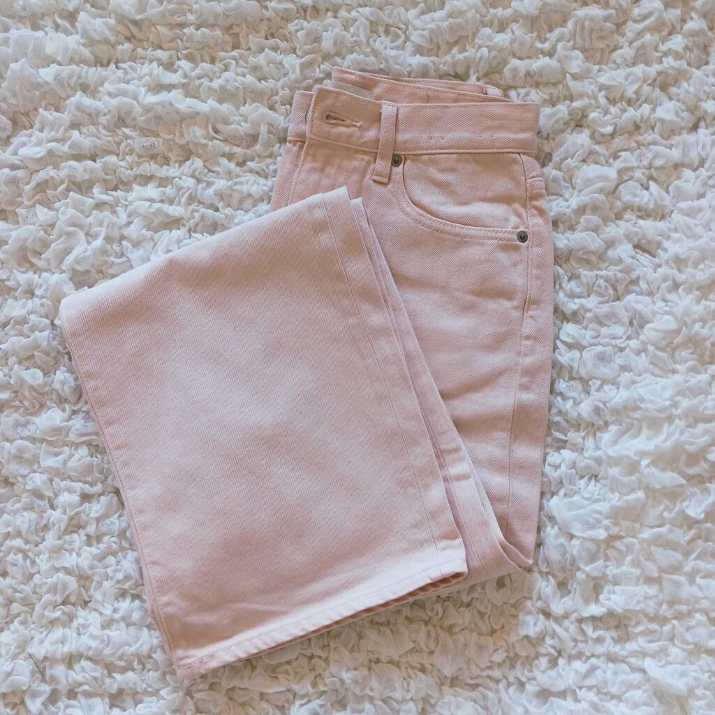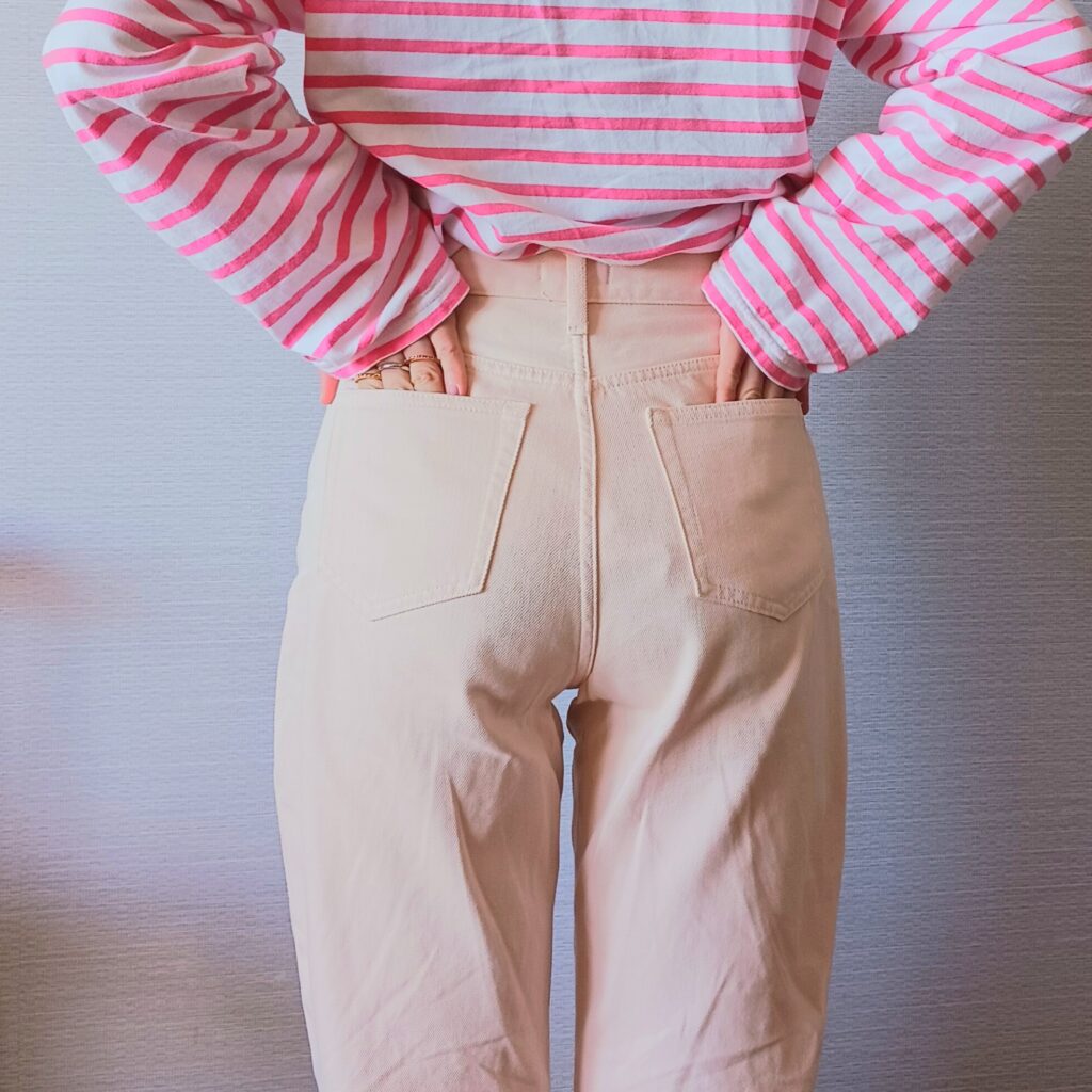 お正月に購入したユニクロのワイドストレートジーンズ♪定番のブルーデニム等、6色展開の中から、可愛いらしい桜ピンクのカラーを選びました🌸