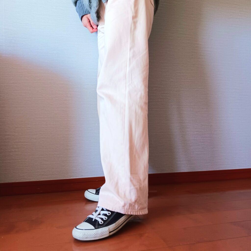 スニーカーにもブーツにも合わせやすく、裾を少しだけ折っても可愛いワイドストレートジーンズでした♪