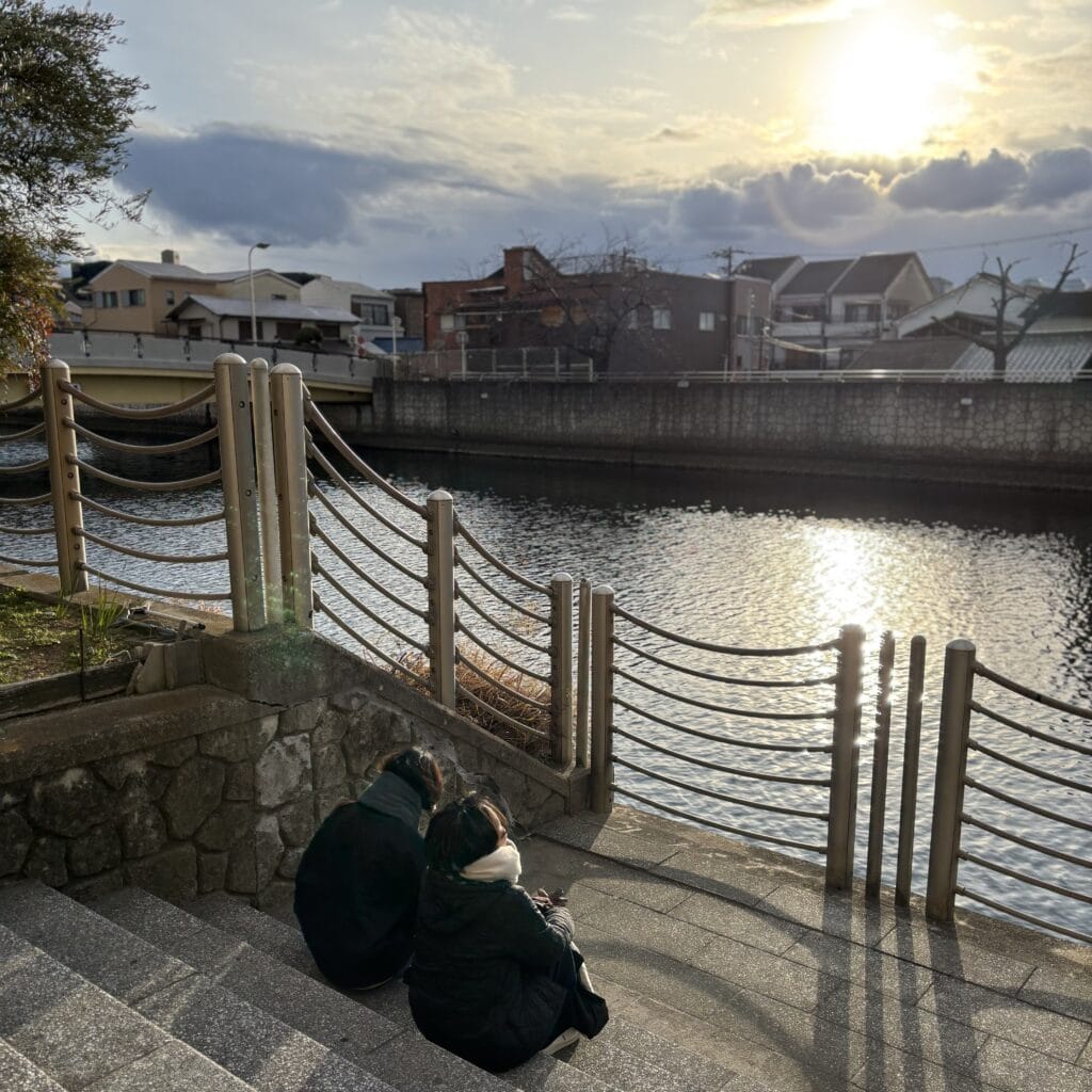 白井さんと静くんが夜に2人で座っていた川辺。そこで、バニラな毎日のように座ってみる私たち