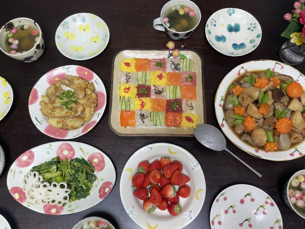 晩ごはん作りに慌て過ぎて、せっかく買っておいたひなあられをまたもや出し忘れるという真抜けっぷりでしたが…。(毎年出し忘れている気がします…)今年もなんとかお祝いの食卓を家族5人で囲むことが出来て良かったです◎子ども達の健やかな成長を祈ります…!