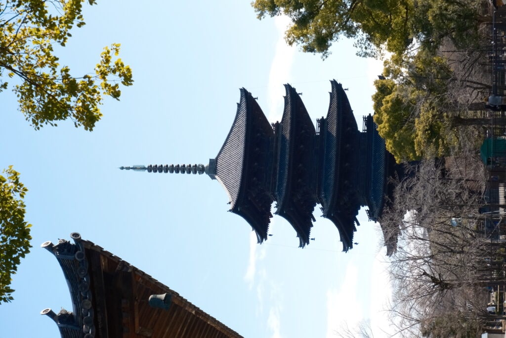 東寺。あまりポピュラーな存在ではないですが、京都駅から歩いて行ける世界遺産です。