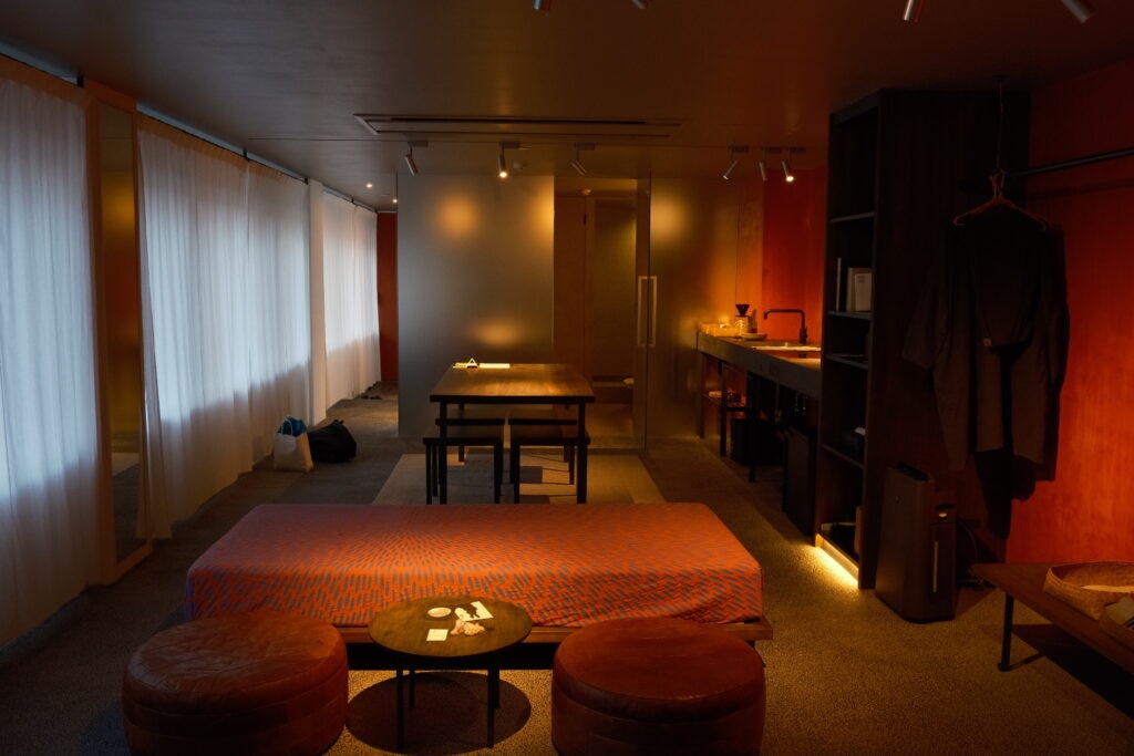 以前京都に来た際に宿泊したエースホテル京都の近くにあり、気になる~~次回はここに泊まろうと勝手に心に決めていたマルダ。ヨーガンレールの営む、3室しかないホテルです。1階はカフェ、2階が赤、3階が青、4階が黒を基調としたお部屋。私は赤のお部屋を予約。