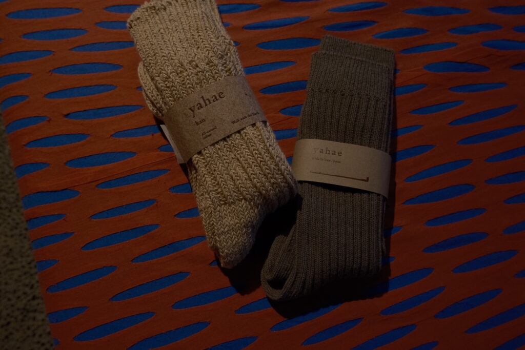 私はYahaeというブランドのソックスを2足購入。いい塩梅の上質な靴下が好きなのですが、履き心地最高でした。ウールなのに洗濯しても縮みにくいし、これはまた買いたい逸品でございました。