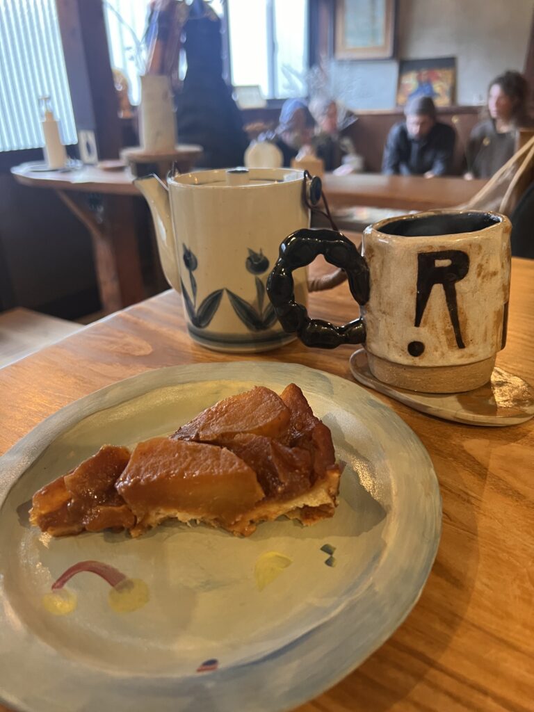 お茶とケーキはあるとのことだったので、ハーブティーと味噌をつかったタルトタタンを頂きました。