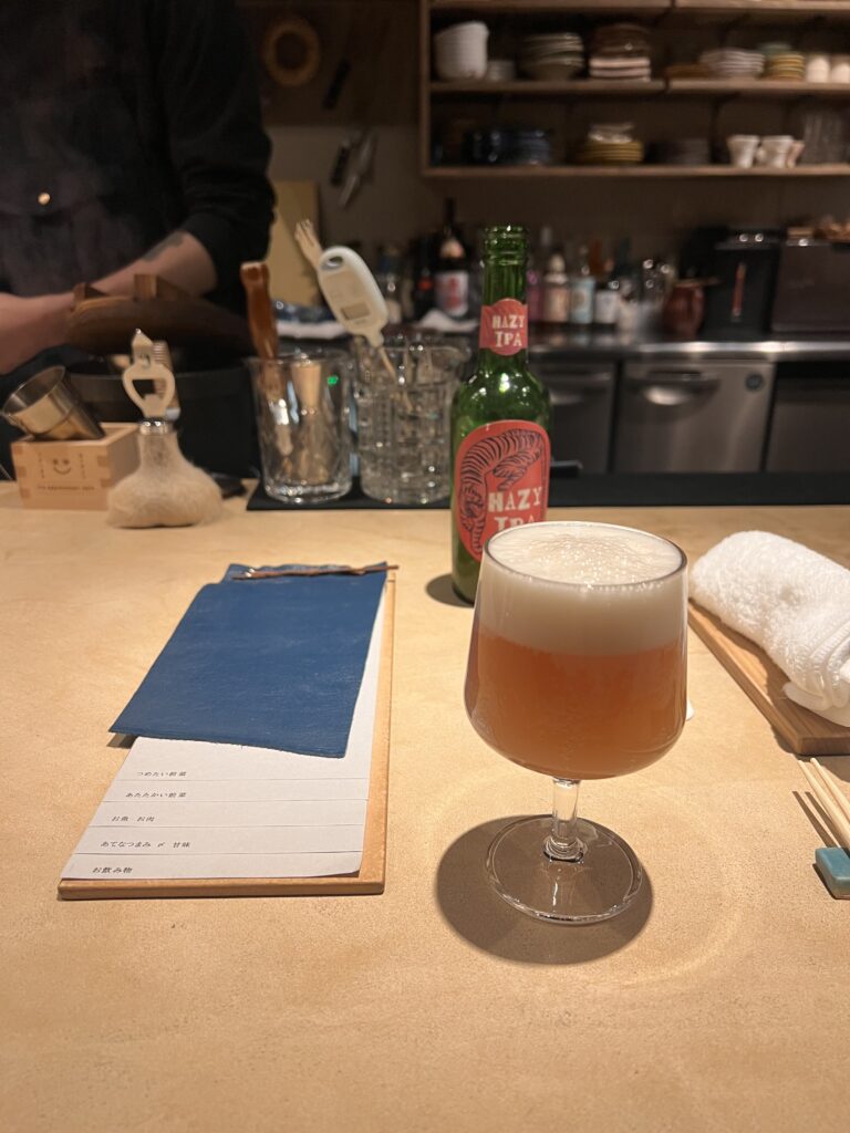 お酒は全然強くないですが、1杯目のクラフトビール、2杯目のオレンジワイン、3杯目の白ワインすべてとってもおいしかったです。