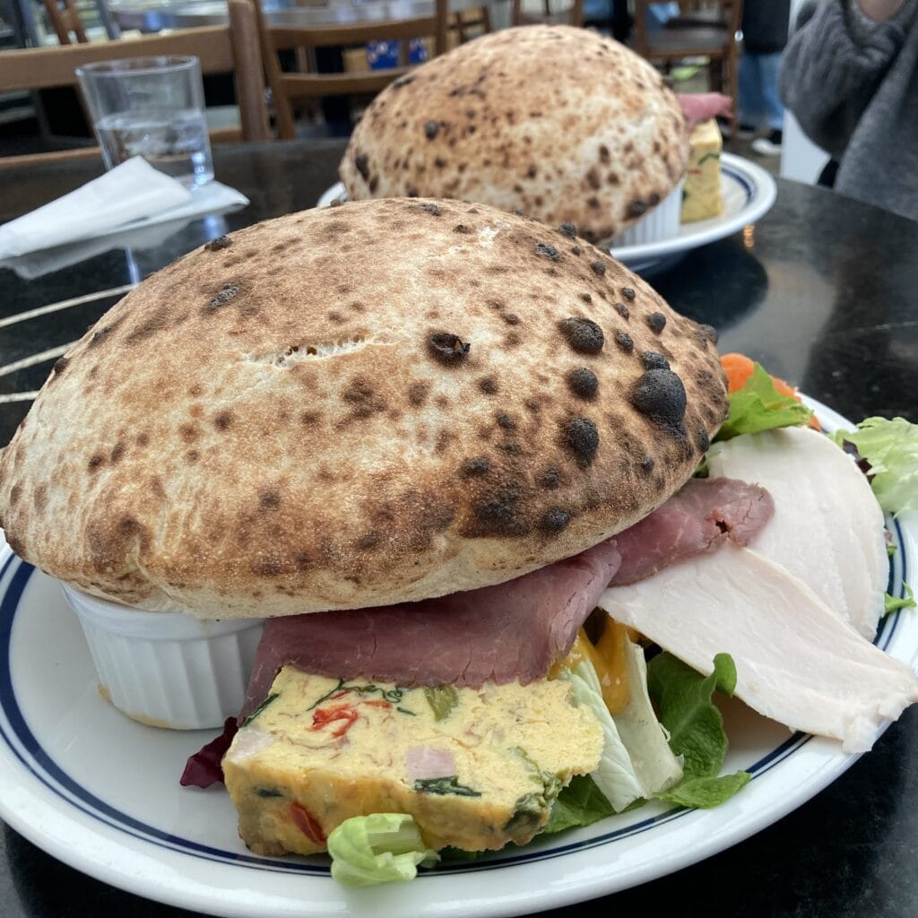 下の野菜やキッシュやハムを好きに挟んで食べるんです。