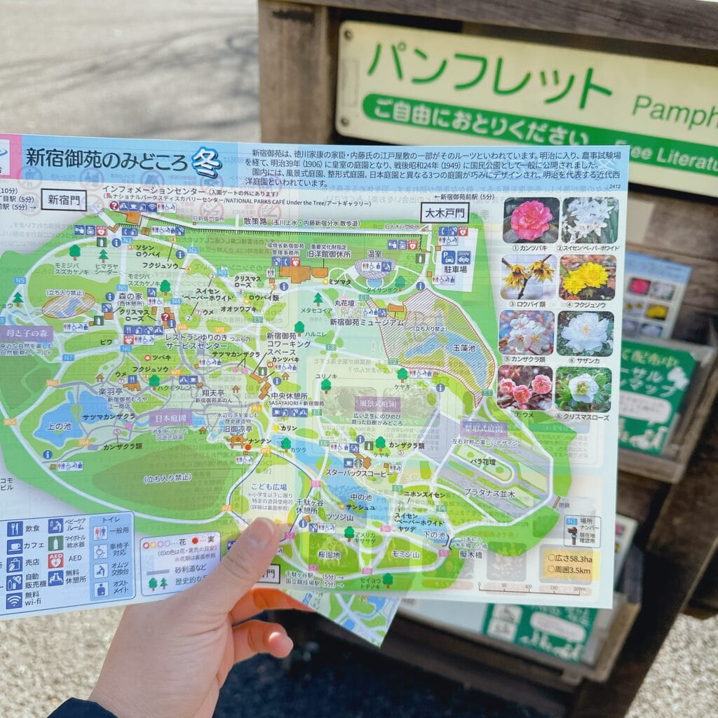 入園門窓口やインフォメーションセンターにおいてある「みどころマップ」