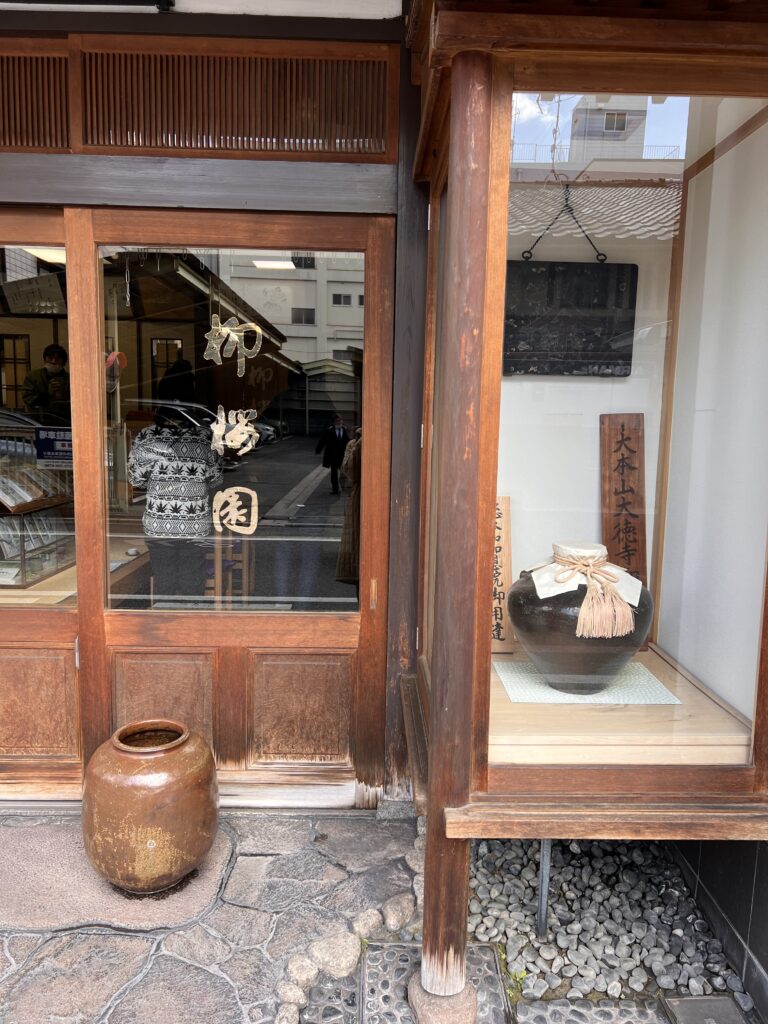 ・柳桜園茶舗 お店からお坊さんが出てこられたので、「ん?なんの店?」と思ってのぞいたところ、何とも風情ある老舗のお茶屋さん。お坊さんが買うなら間違いないという謎の基準が突然設けられ(笑)、両親・義両親へのお土産に「高級煎茶 朝日」を購入。京都らしいお土産が買えてうれしい!
