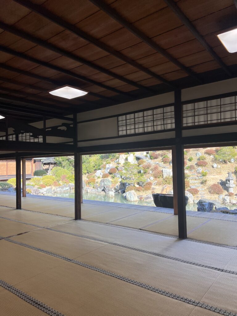 平安神宮の程近く、無鄰菴へ。明治に山縣有朋が京都に造営した別荘で、立派なお庭を眺めながらお茶とお菓子を楽しめるのとのこと。しかし、2月はお庭も枯れ気味(笑)期待ほどではありませんでしたが、京都らしい体験ができました(適当すぎ・・・?)