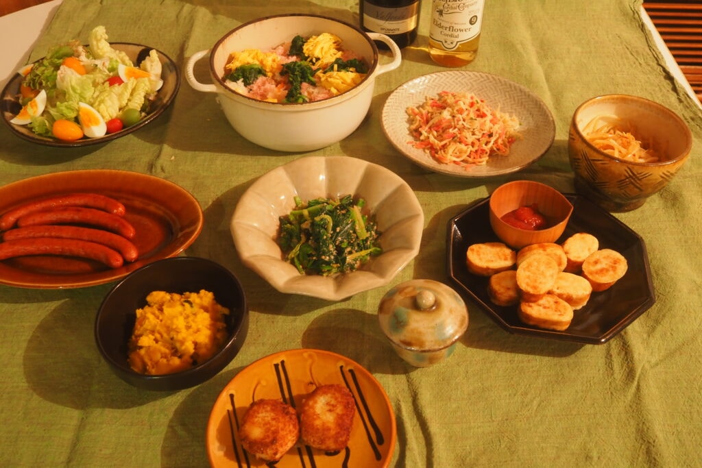 あとは品数で勝負!食卓をぎっしり埋めることで、なんとかお祝い感を出せないかと必死の母でした。