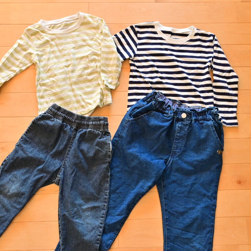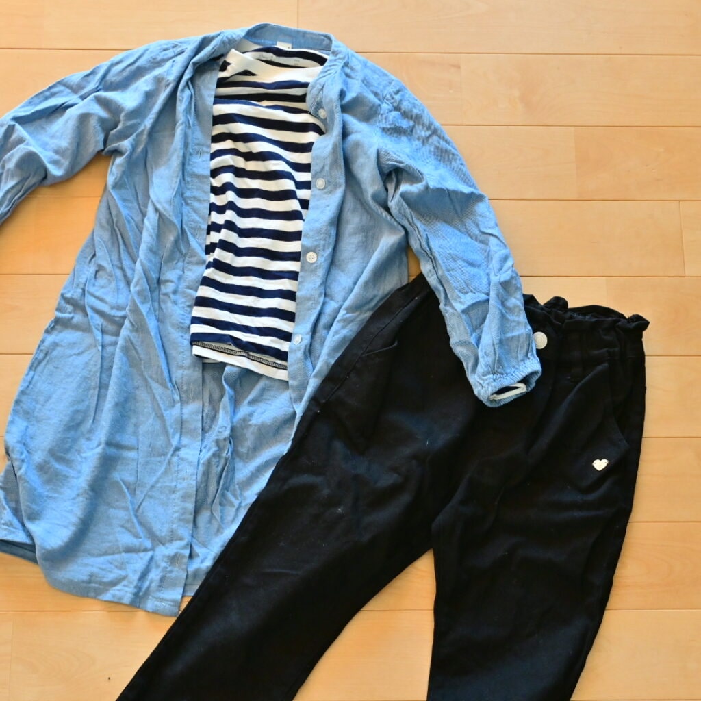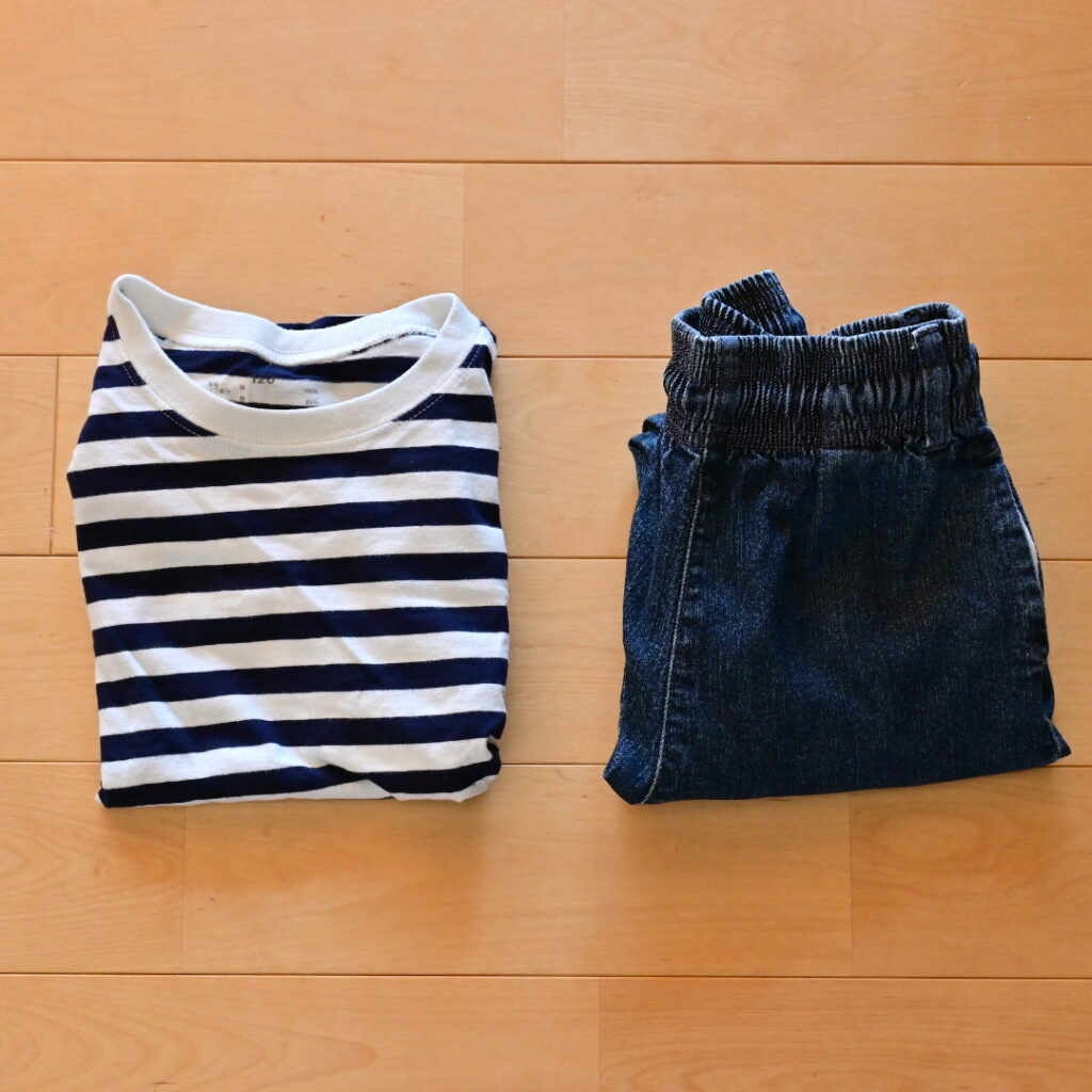 とりあえず手元にあるいくつかのボーダーの中から、こどもの無印良品のトップスをセレクト。