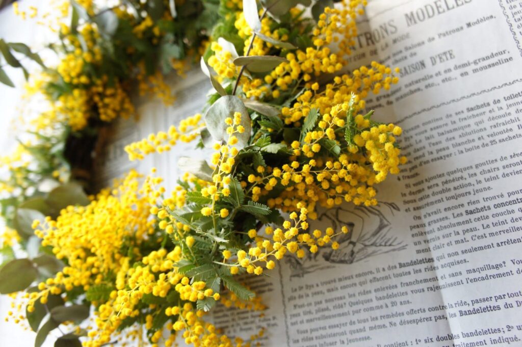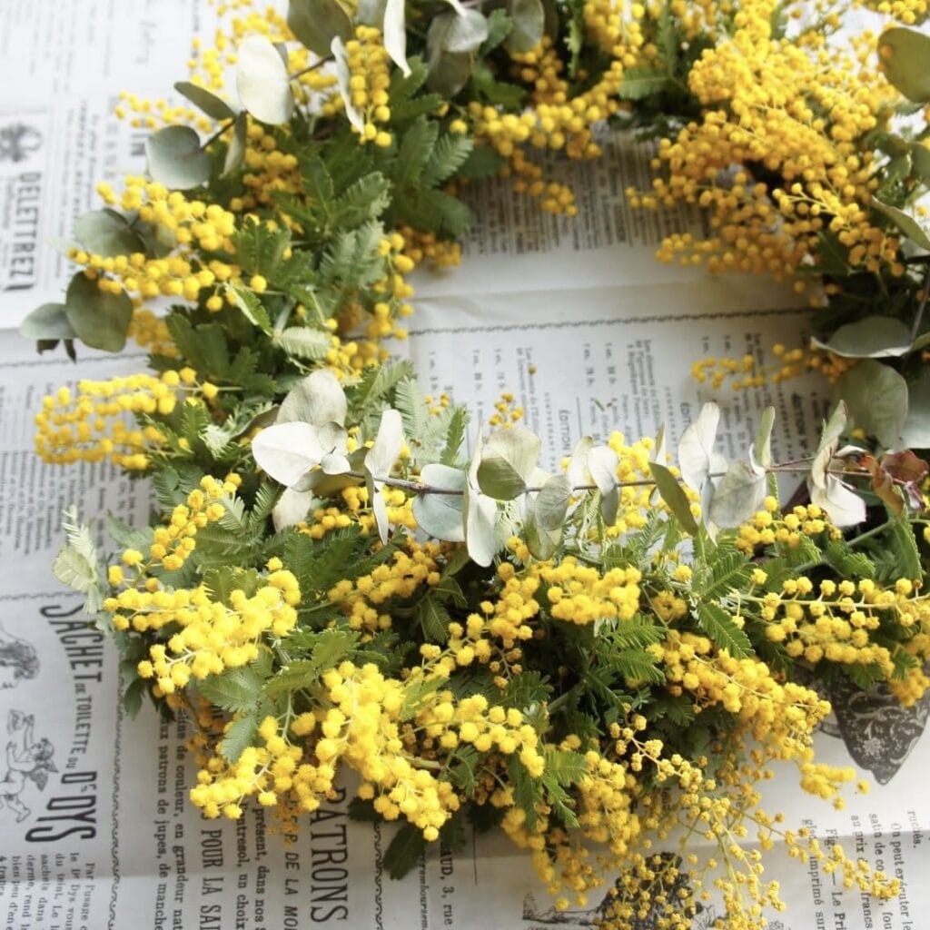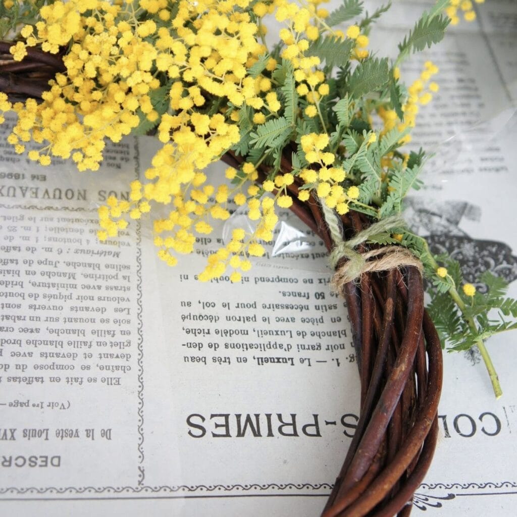 たくさんミモザをいただく機会が毎年あるので、今年もリースにしました。