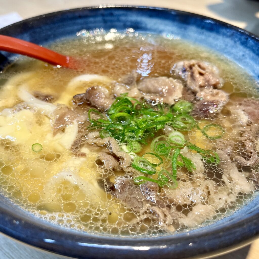 牛肉ととろけるチーズが大量に入った、ガッツリ系うどんです。