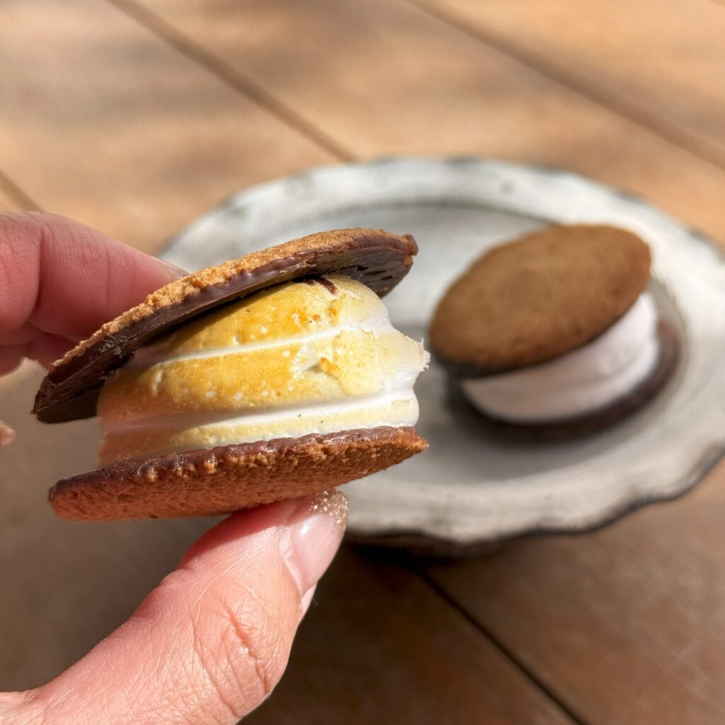 サンド。マシュマロの中にはなめらかチョコレートが入っています。