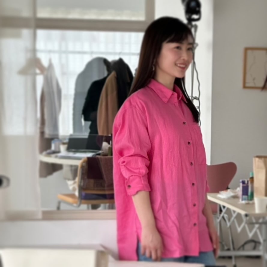 これまで着たことのない派手カラーのピンクのシャツにプロの方にメイクをしていただきドキドキ!♡