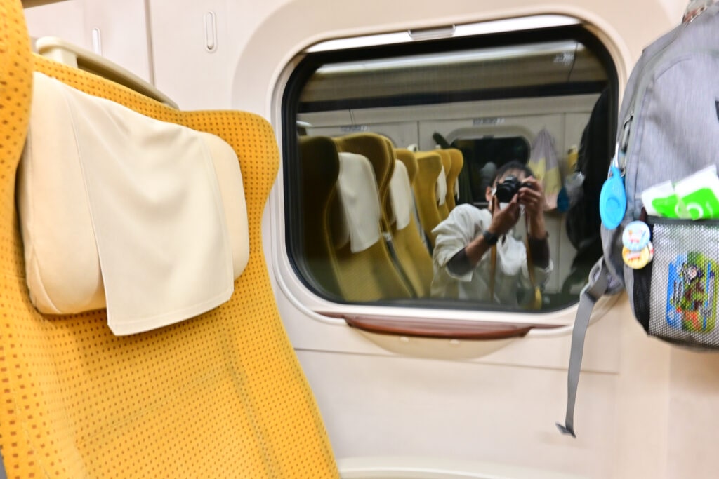 予定していた新幹線(緑色だった)は自由席が混雑していたので、見送ることに。