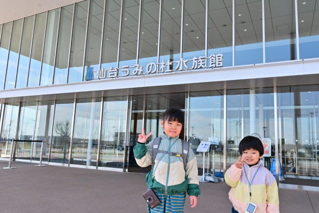 仙台駅からは20分ちょっとかな?在来線に乗り水族館の最寄り駅・中野栄駅で下車。駅と水族館はかわいいラッピングの直通バスに乗ります。