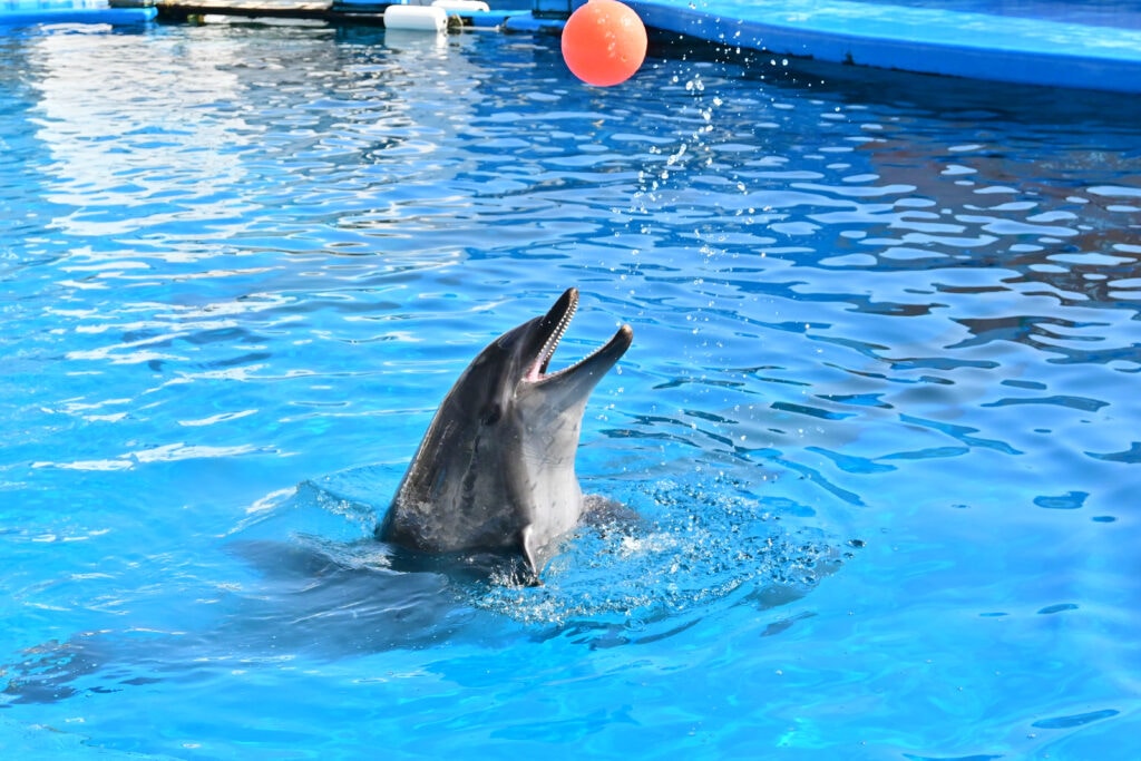イルカのパフォーマンスも水族館のみどころの1つ。仙台うみの杜水族館ではイルカ以外にも、アシカや大型の鳥(インコなど)もパフォーマンスに参加。いろんな生きものの生態や秘密を間近で感じられます。