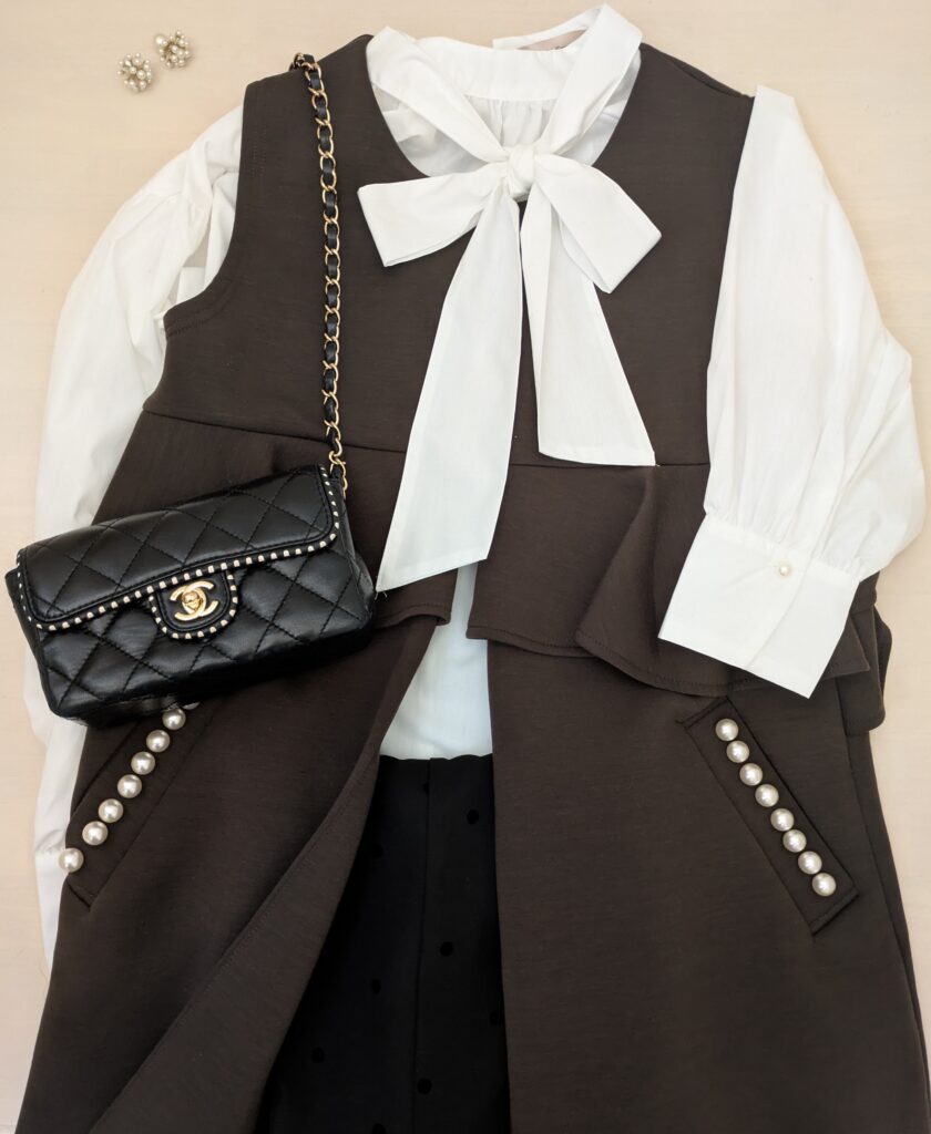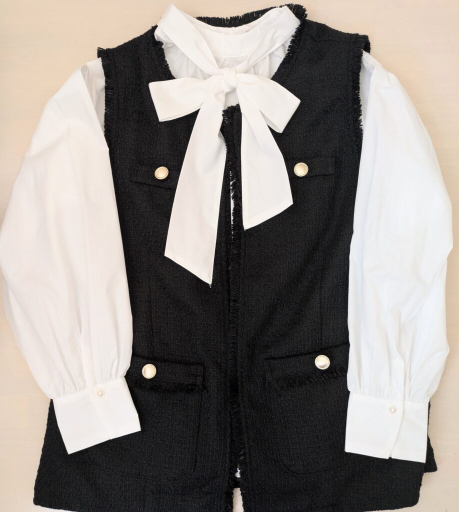 私の購入したしまむらリボンブラウスは、ツイードジレとのセットで、ツイードジレだけでもとても使いやすいです