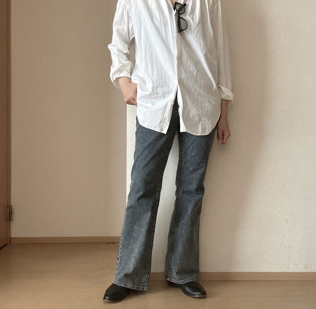 最近ネットで購入したオーバーサイズのブルーシャツを合わせてブルーonブルーに。爽やかな雰囲気がお気に入りのコーディネート。早く暖かくなって欲しいな。
