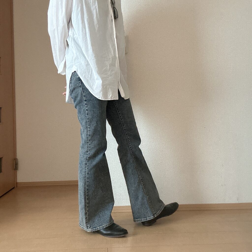 着丈もちょうど良く広がった裾との対比で膝や太ももが細く見える気がします♬