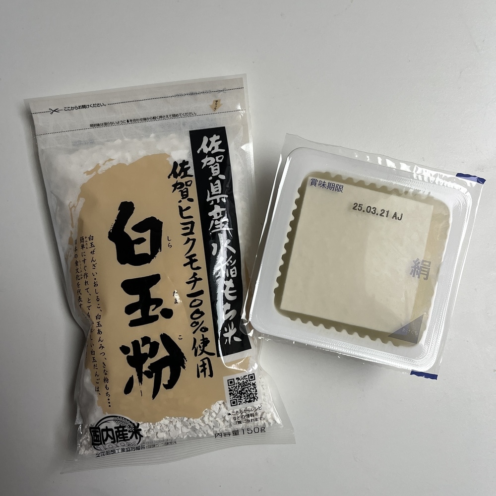 豆腐白玉に必要なのは、白玉粉と豆腐のみ。