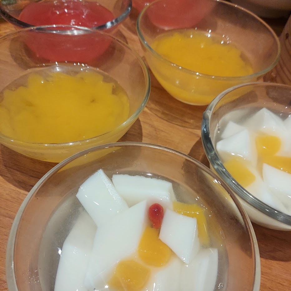 デザートだって食べ放題 デザートだって途中に挟んじゃう贅沢さ!こどもは、今回初の苺を気に入っていました。私は、とろっと滑らかな杏仁豆腐が好きです。杏仁豆腐・マンゴーゼリー・苺ゼリーのカラフルスィーツ