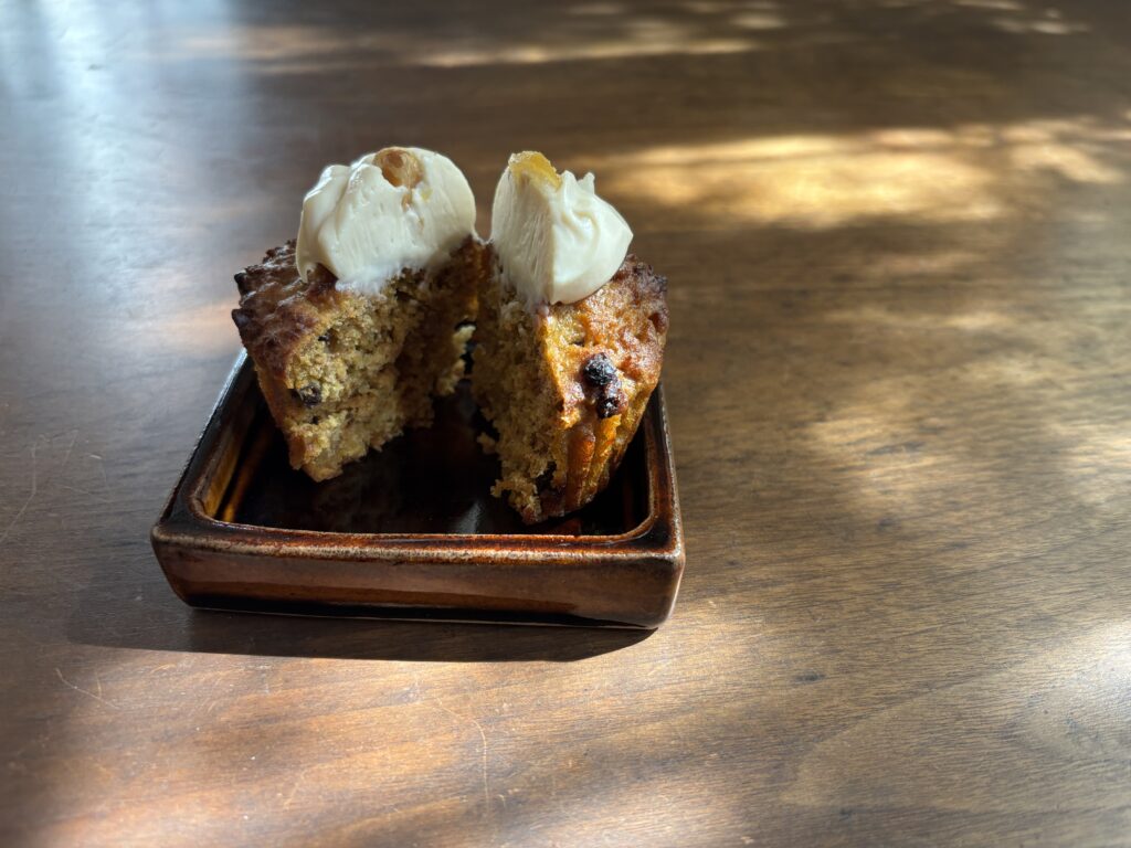 人参の甘みと、ぎっちり入ったレーズンとクルミの食感を楽しみながら噛んでいるとスパイスの香りも鼻に抜けてスパイス好きにはたまらないおやつ。