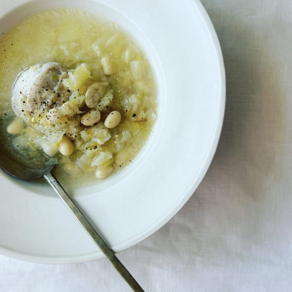 鶏と豆とねぎのスープ