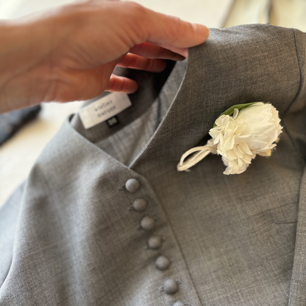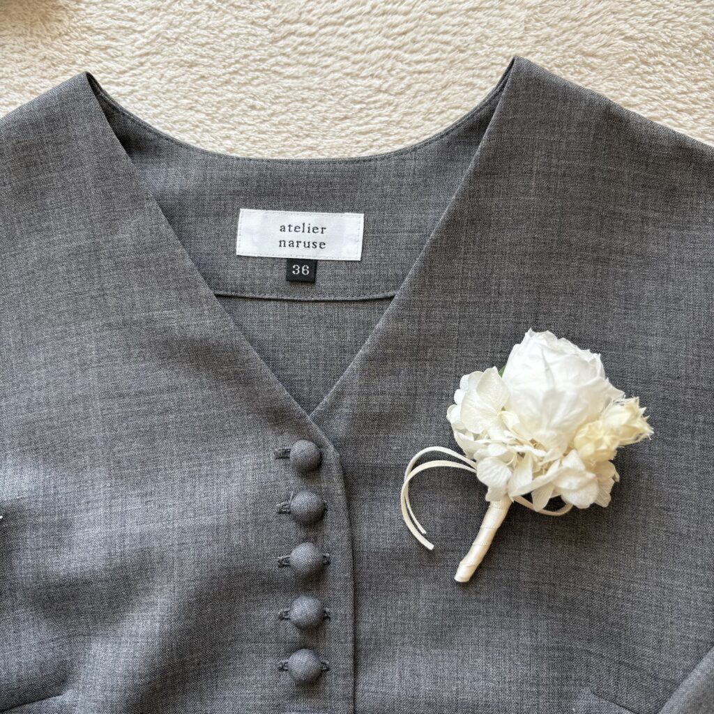 申し訳ないです。はい、また同じコーデです。コサージュのみ新調しています。