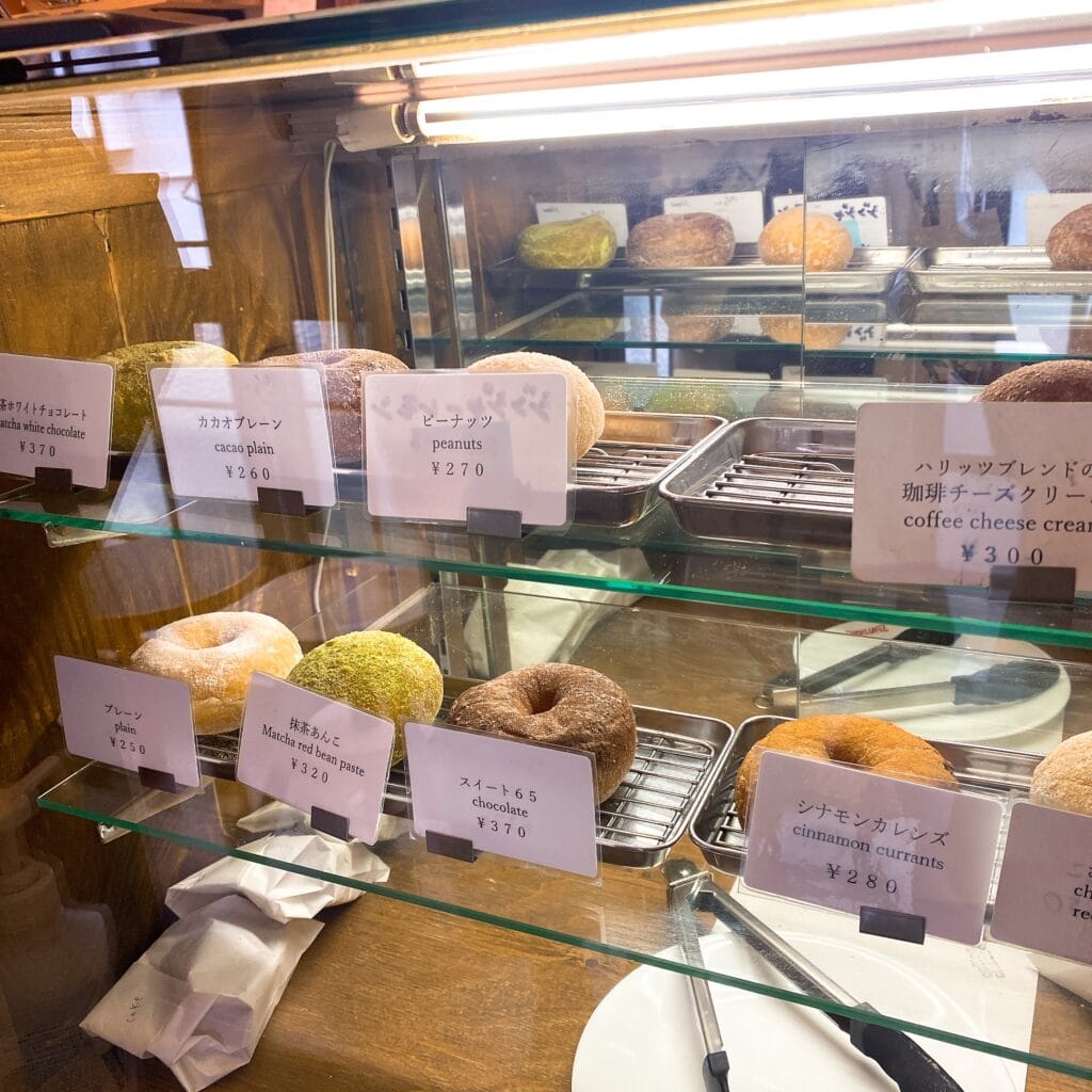 お店に入ると、小さなショーケースにドーナツが一つずつ綺麗に並んでいました。
