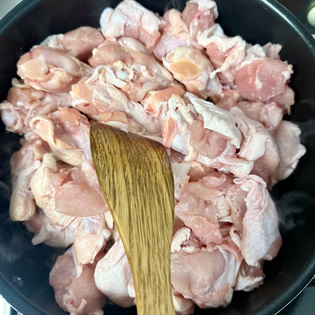 お鍋いっぱいのお肉なので、焼き目をつけるのも一苦労。