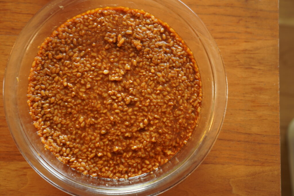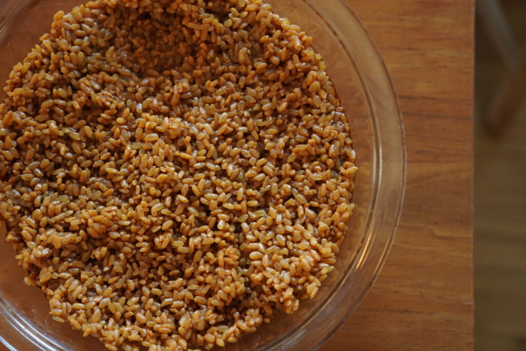 炊飯器の保温機能を使って一晩でできる、というものもありますが、我が家はそのまま置いておくことがほとんど。馴染んできたら完成です。(完成と言っても混ぜる以外何もしていないですが 笑)