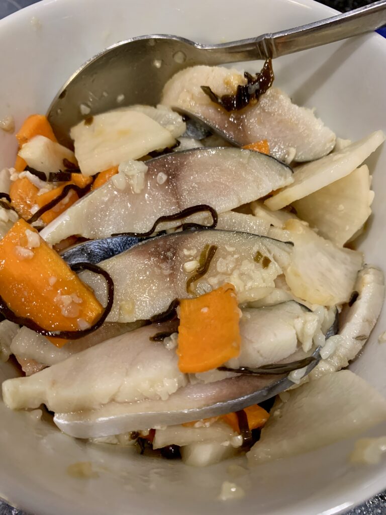私が好きな食べ方は、た〜っぷりの大根おろしと海藻類を入れて食べること。