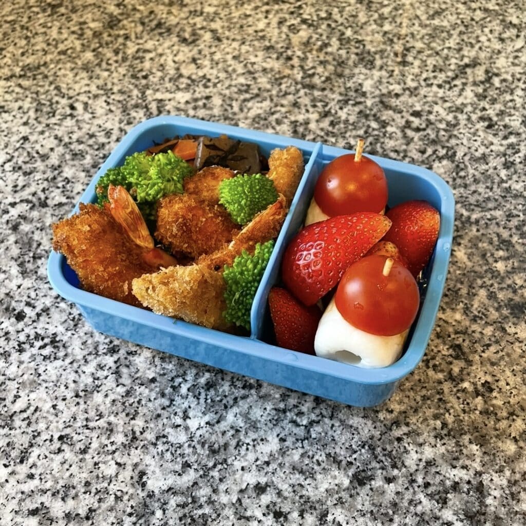 「息子くんのお弁当箱、エビフライといちごが入ってるんだよー!」と、出かける時に出会ったお友達に早速伝えている姿にほっこりした母でした。